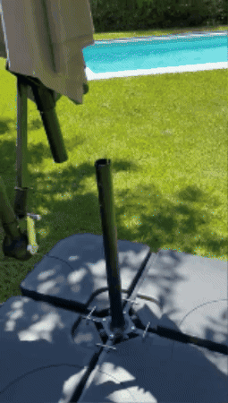 - El mismo brinda estabilidad y mantiene firme la sombrilla durante su uso. En caso de viento, es indispensable cerrar la sombrilla para evitar que se desplace o se vuele, garantizando así la seguridad y el cuidado del producto.