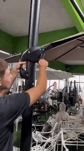 - El mismo sirve para brindar estabilidad y mantenerla firme durante su uso. En caso de viento, es indispensable cerrar la sombrilla para evitar que se desplace o se vuele, garantizando así la seguridad y el cuidado del producto.